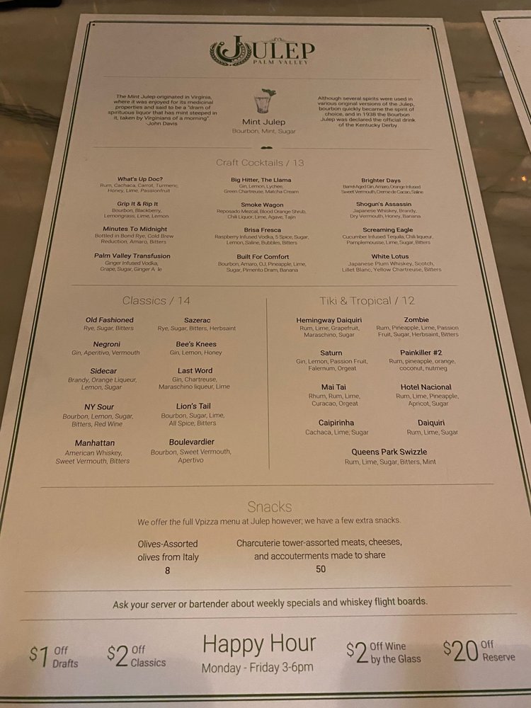 Welcome to V Pizza & Julep - Palm Valley, where culinary excellence meets inviting ambiance in Ponte Vedra Beach. Their menu showcases delightful offerings that are perfect for pizza lovers and sandwich enthusiasts alike.